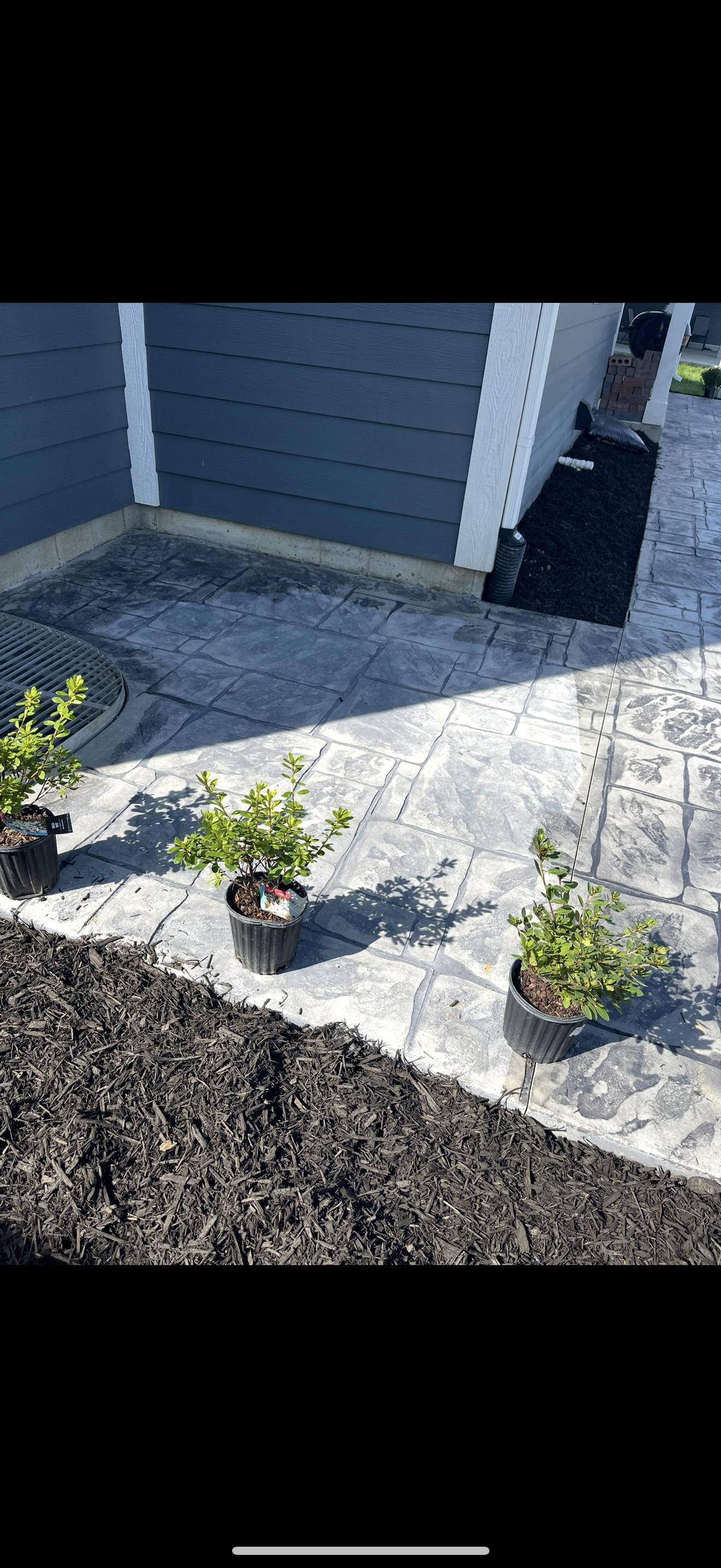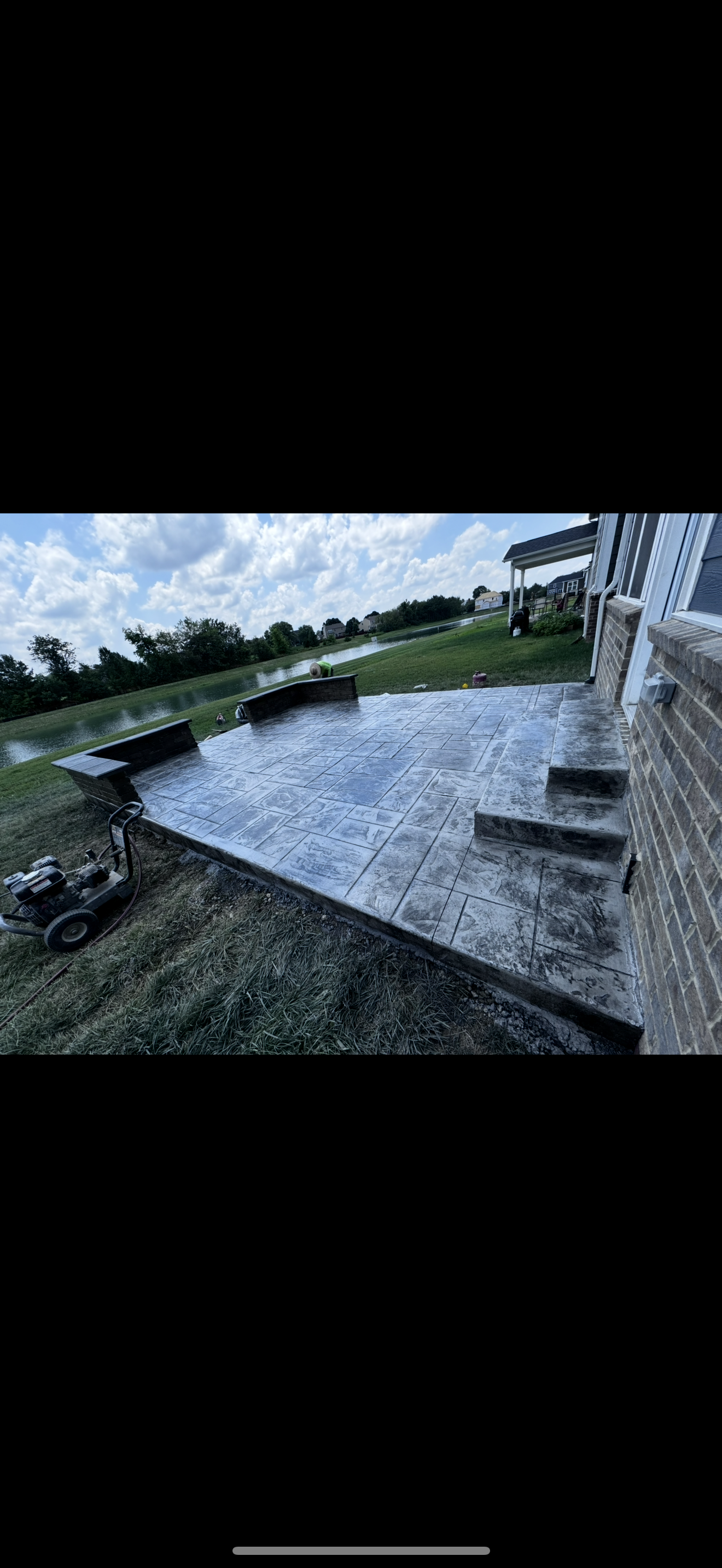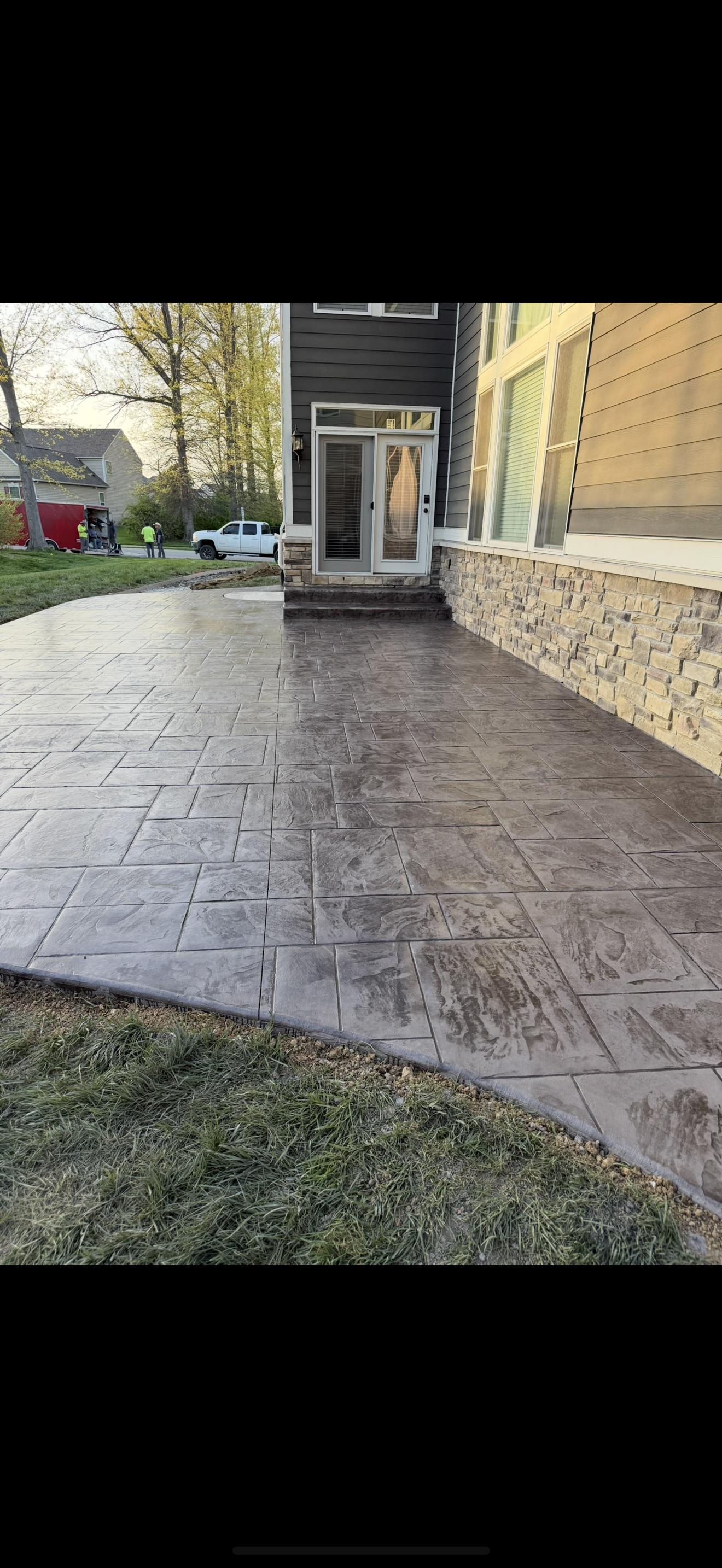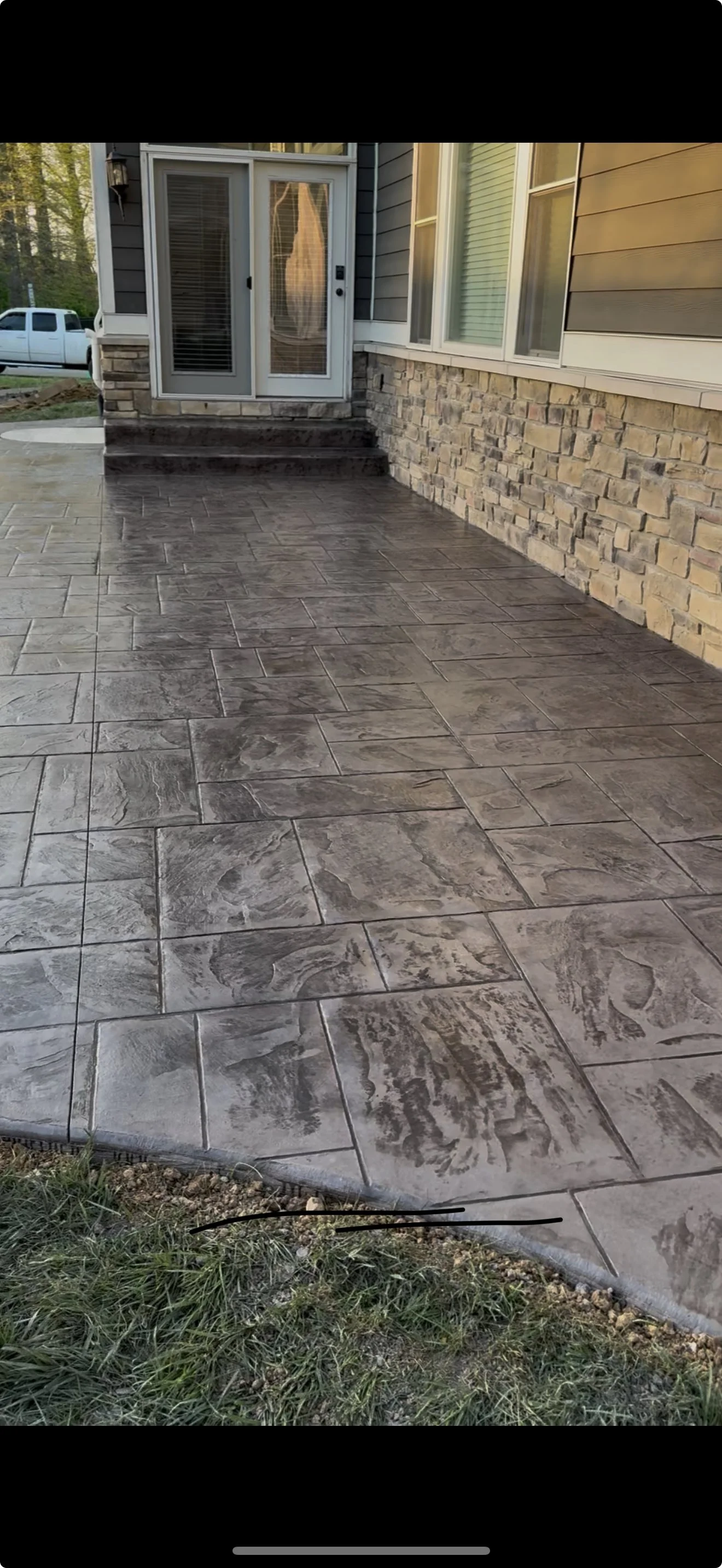 This stamped concrete has been specially designed to look similar to stone. Stamped concrete is a popular decorative option for patios as well as driveways.